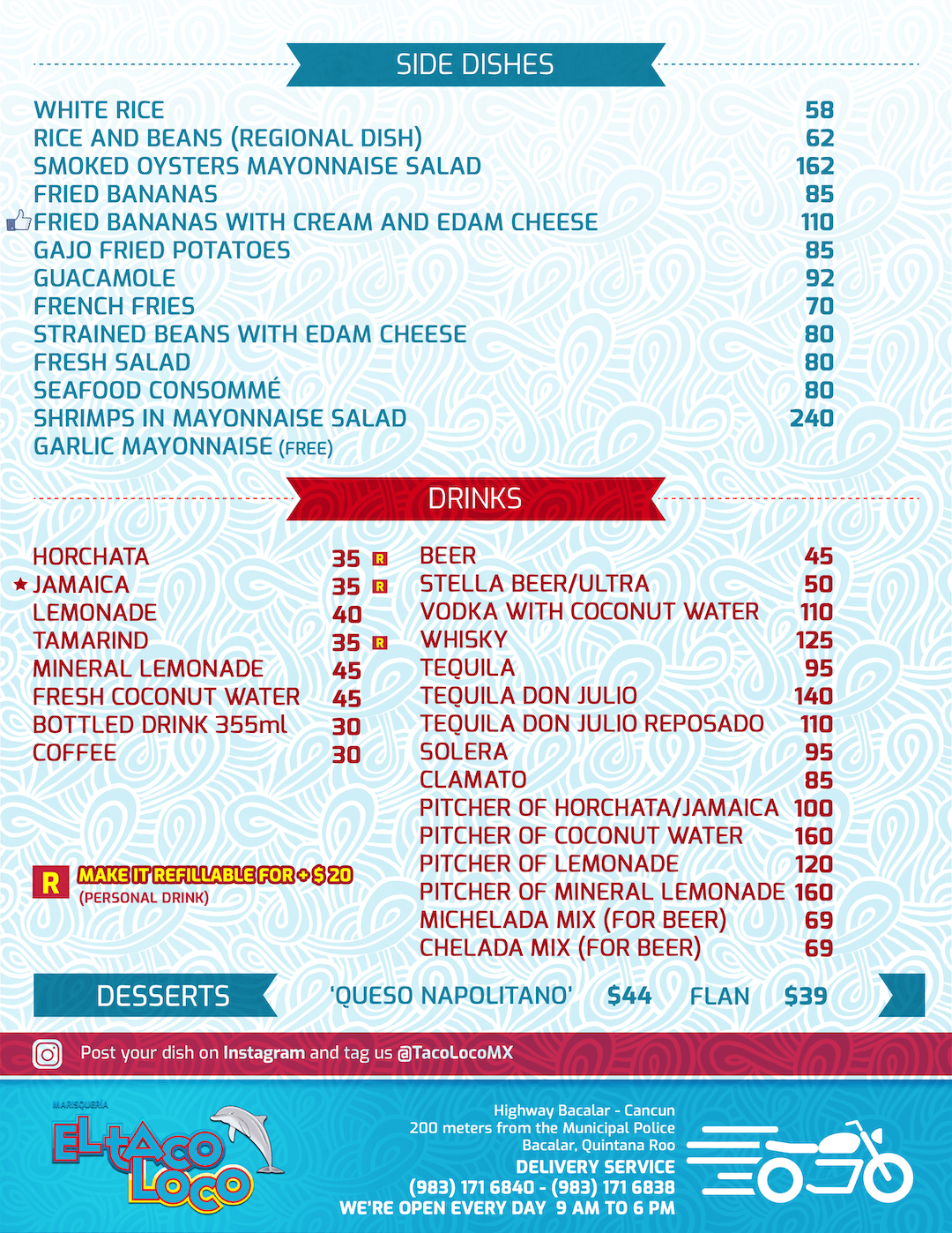 Bacalar English Menu